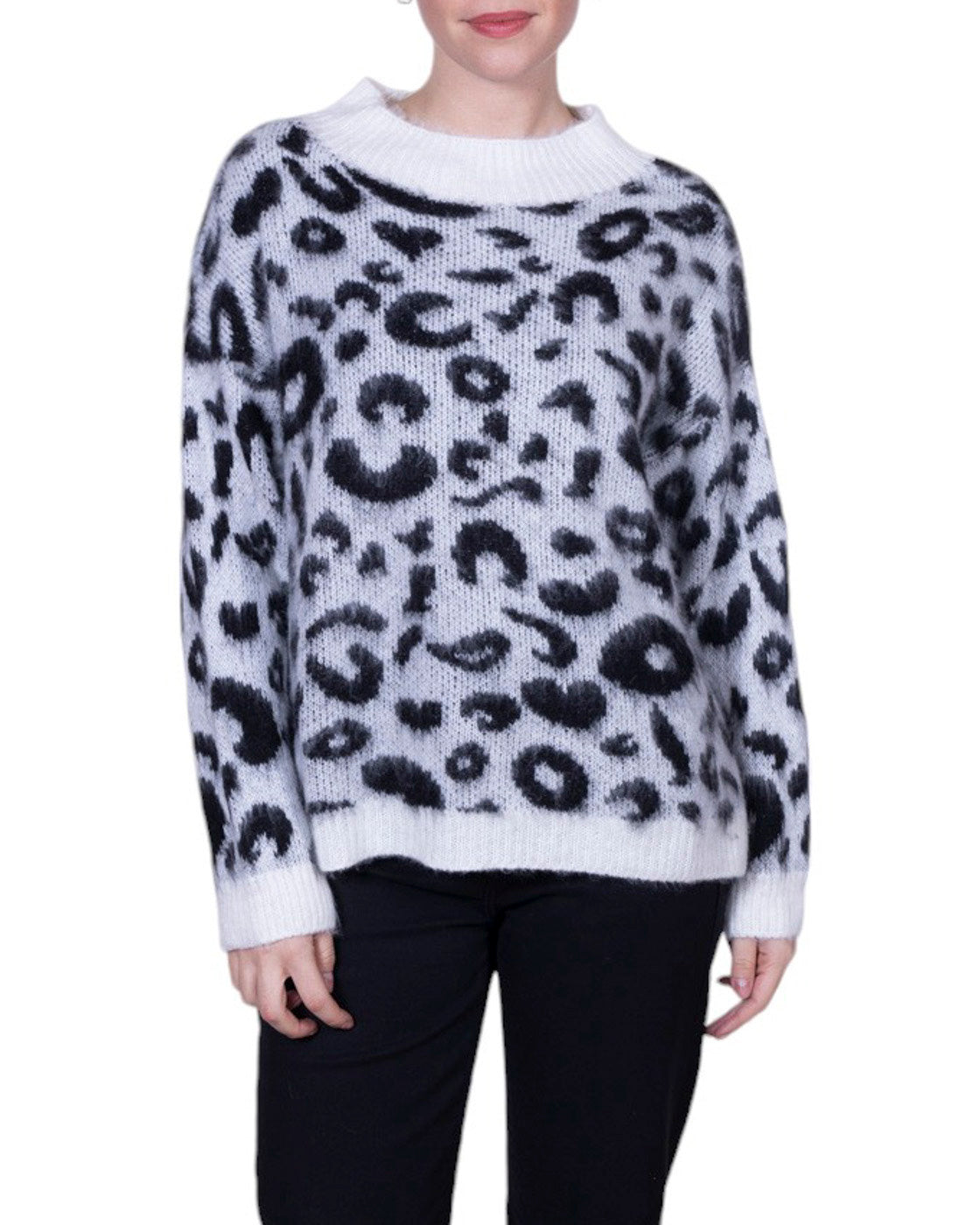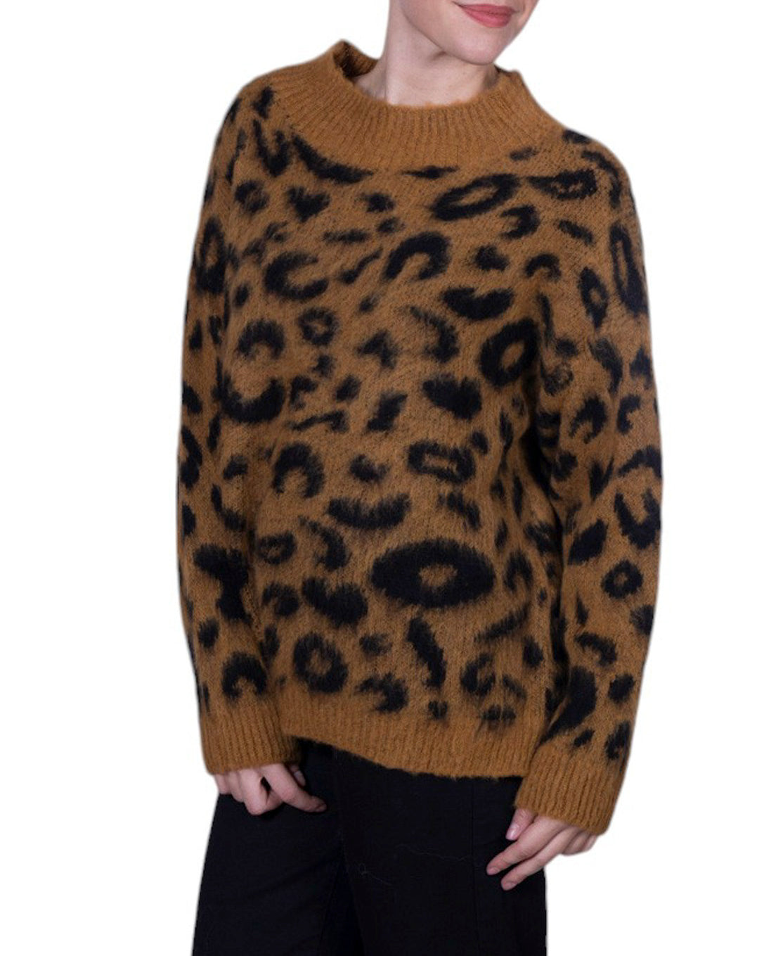 Maglia donna in misto lana con fantasia leopardata e vestibilità morbida